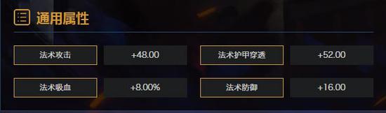 总属性:法术吸血+8.0%/法术攻击+48/法术防御+16/法术护甲穿透+52